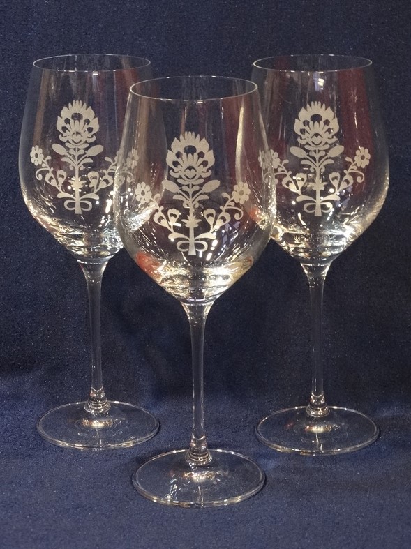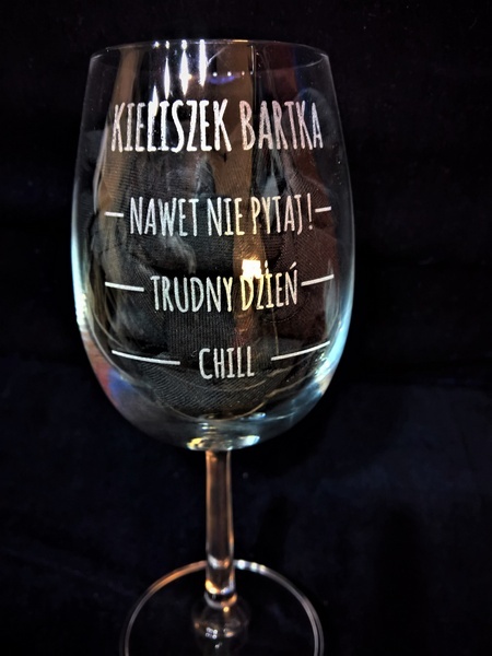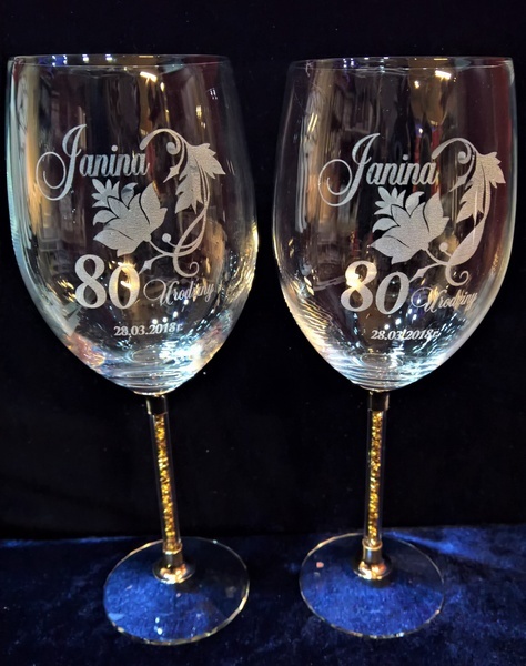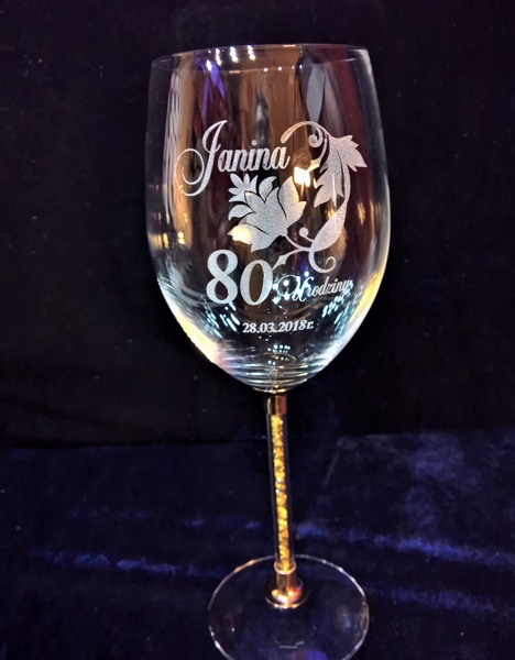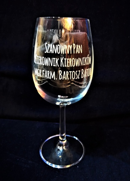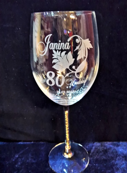 Grawer wykonany jest laserowo bezpośrednio na czarce kieliszka po okręgu.