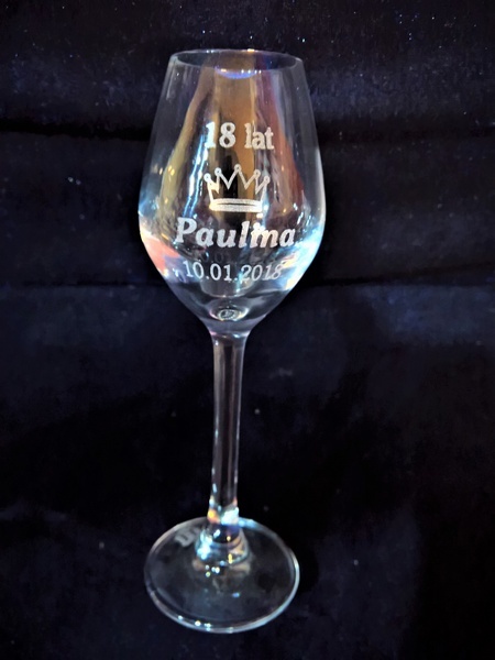 Grawer wykonany jest laserowo bezpośrednio na kieliszku po okręgu.