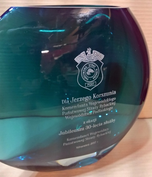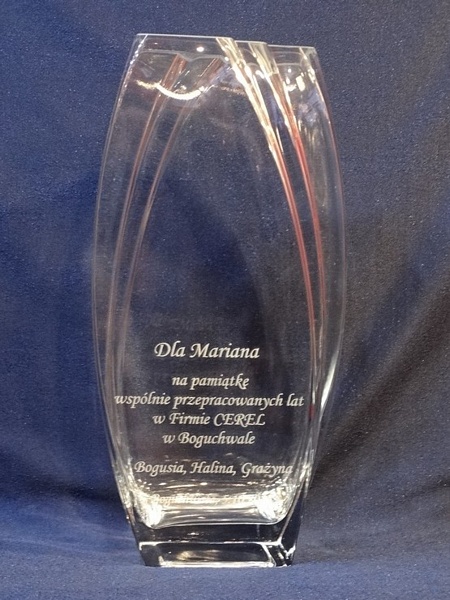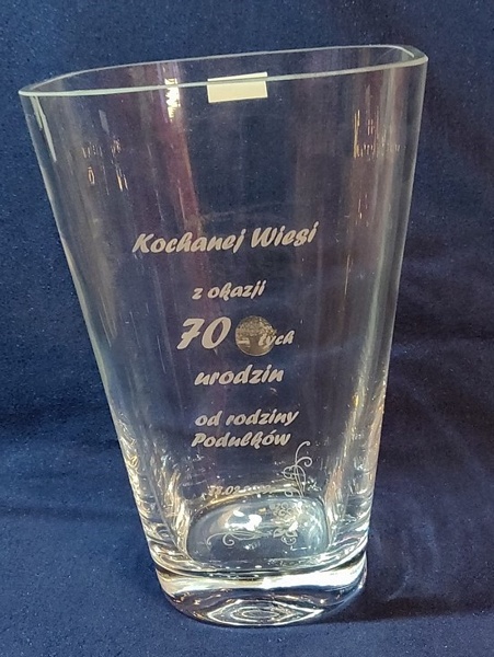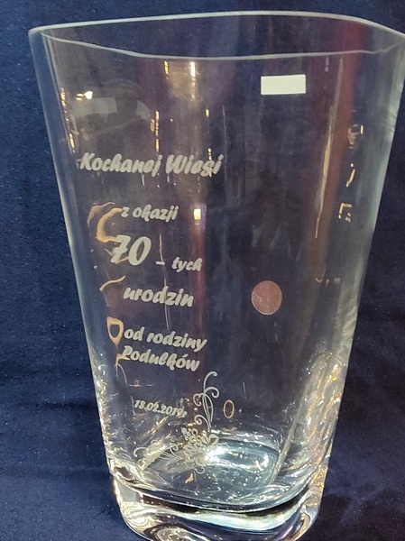 Usługa grawerowania na szklanym wazonie.