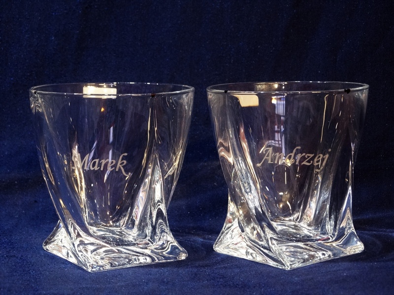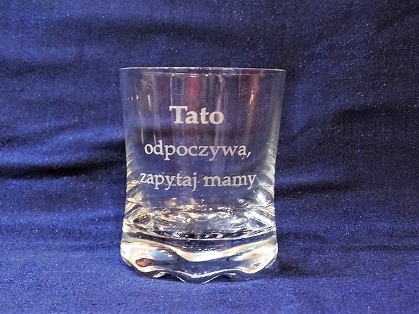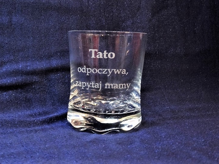 Usługa grawerowania na szklance do whisky.
