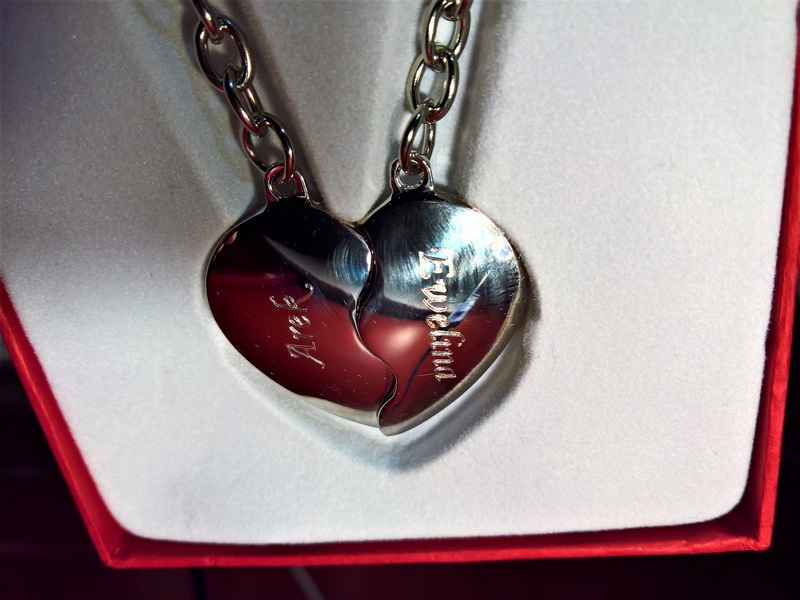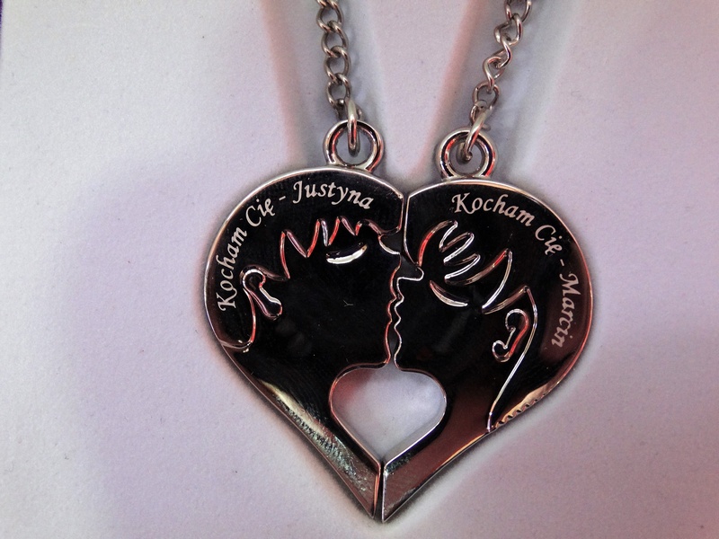 Cena wykonania usługi zawiera w sobie grawer po 10 znaków / liter na każdej z połówek serca.
