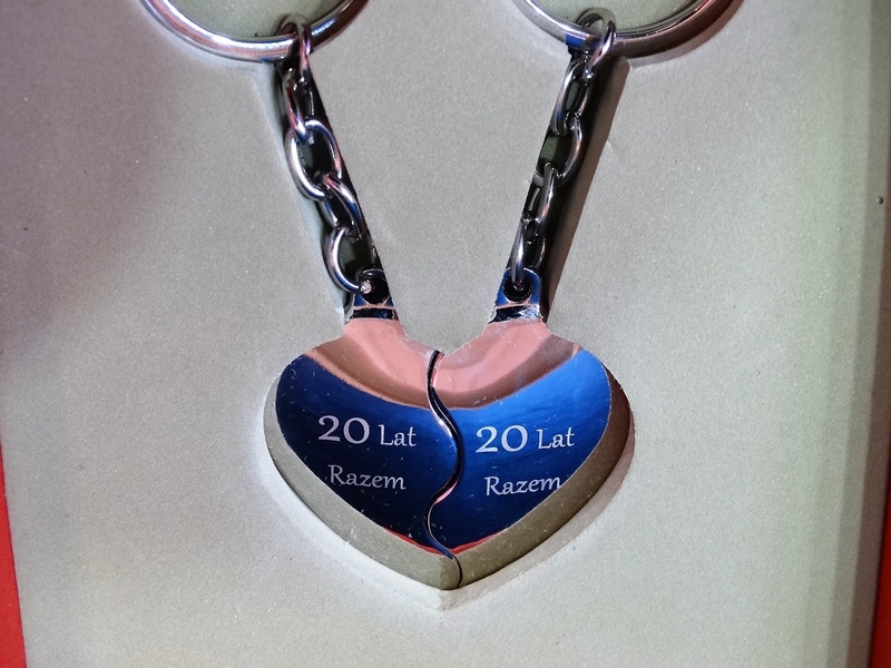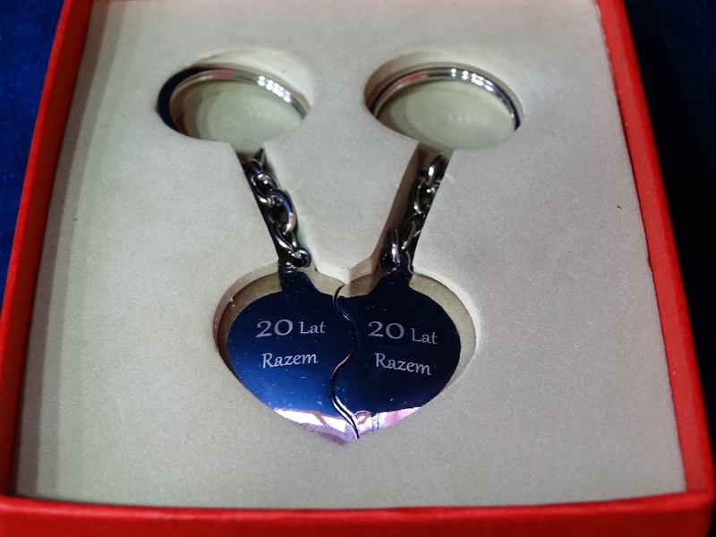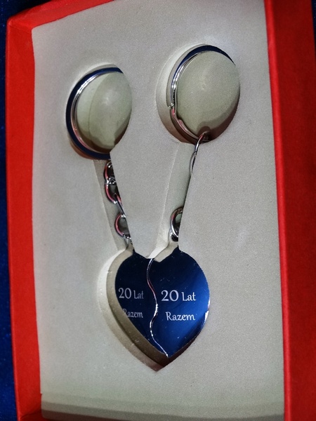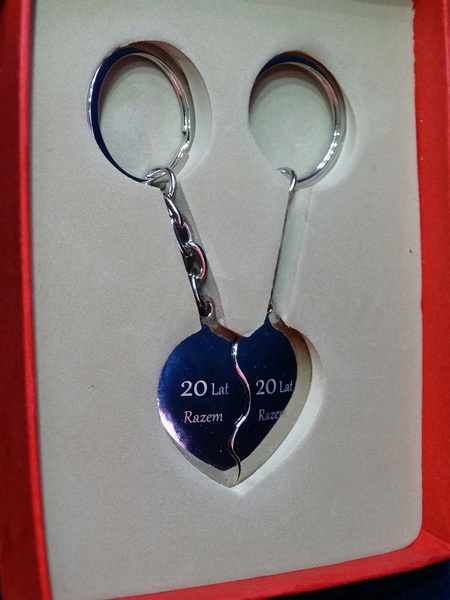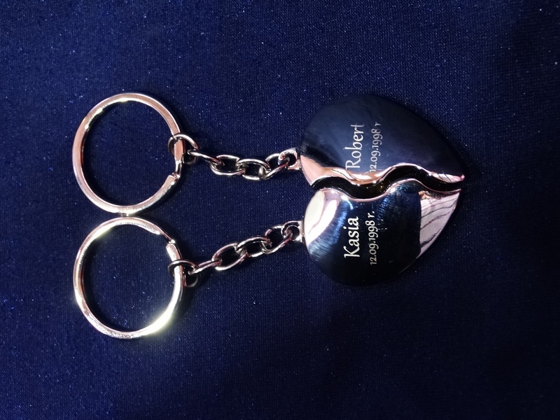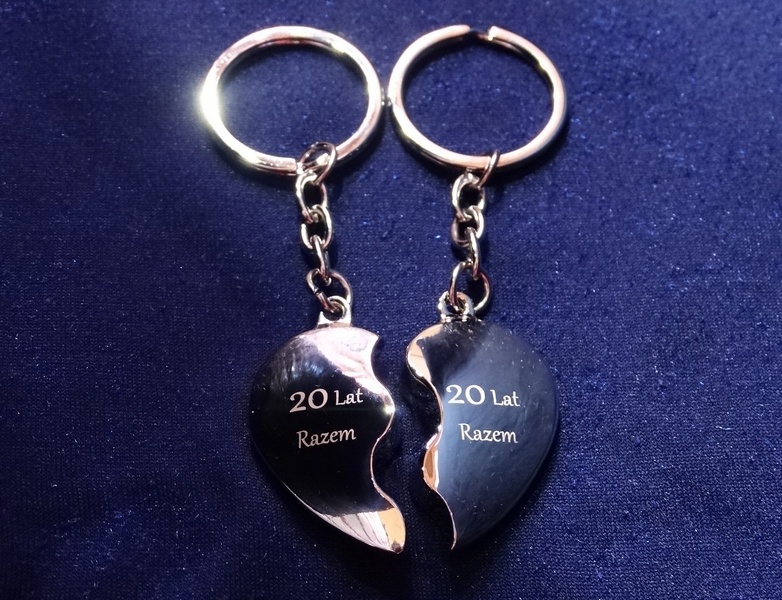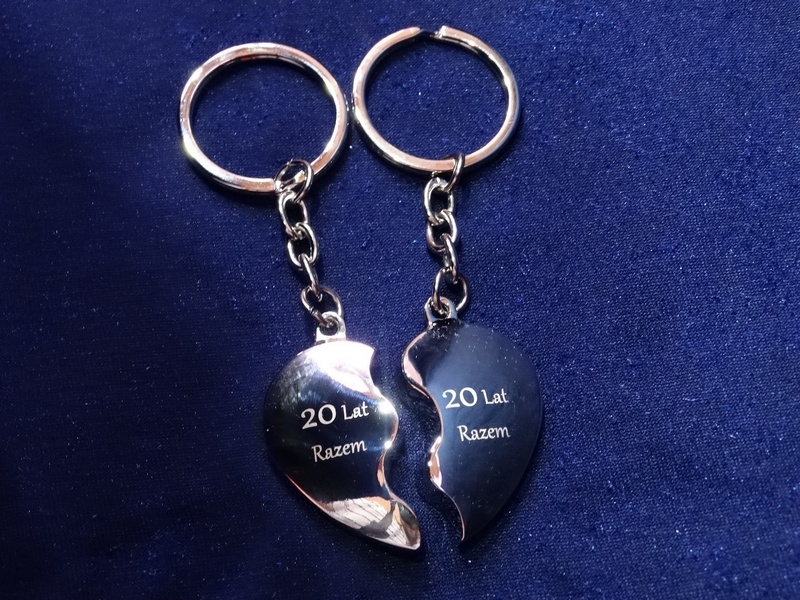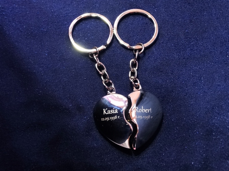 Grawer wykonany jest laserowo lub mechanicznie na obu połówkach serca tworzącego podwójny breloczek.