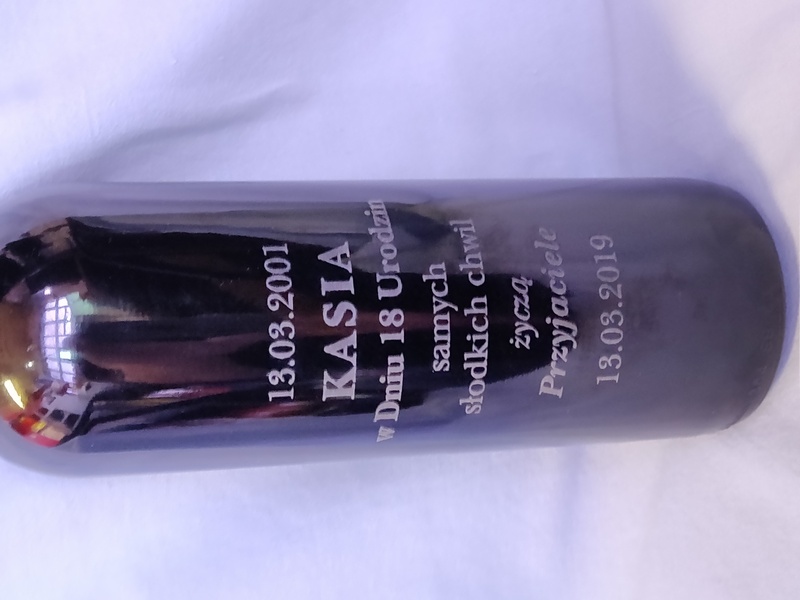 Grawer wykonany jest laserowo po okręgu bezpośrednio na butelce.