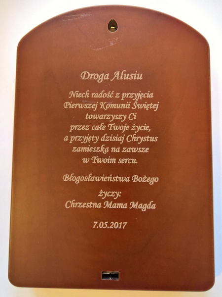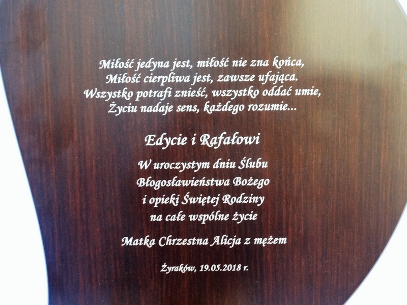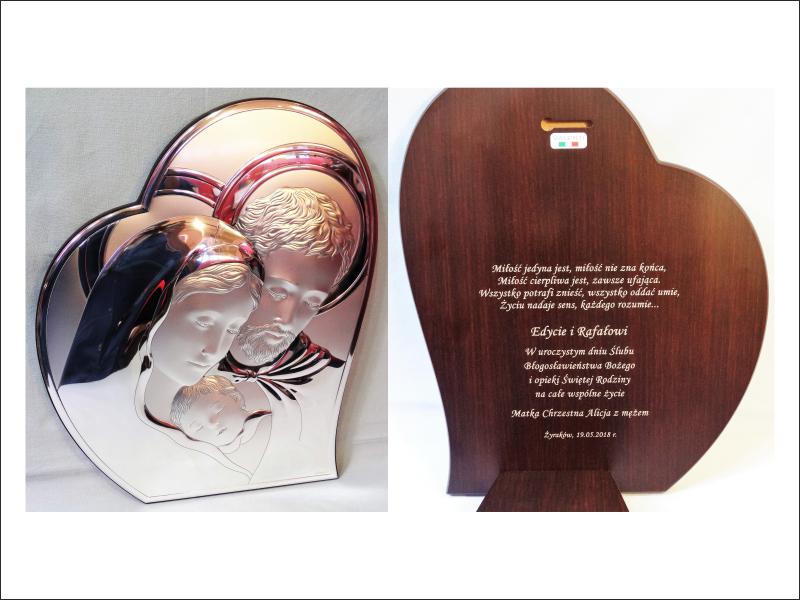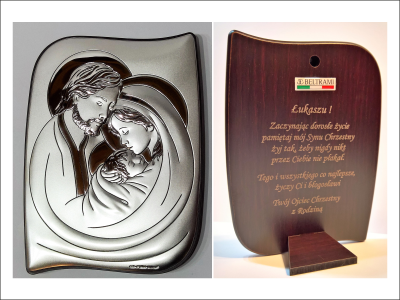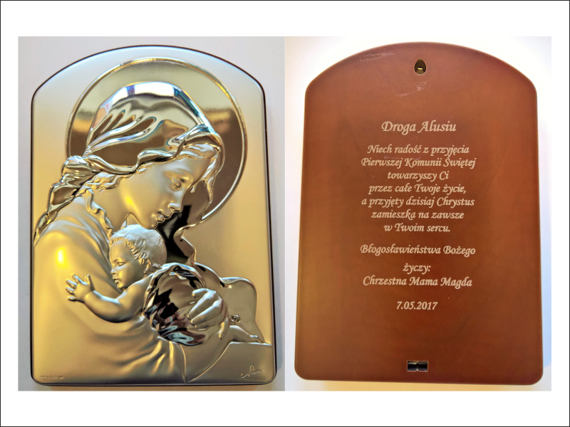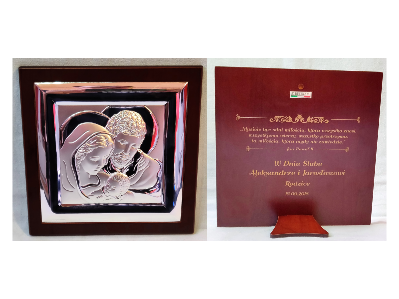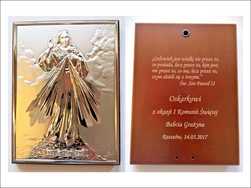 Cena wykonania usługi zawiera w sobie grawer dedykacji na odwrocie dużej wielkości srebrnego obrazka.