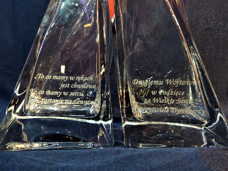 W przypadku gdy grawerowana dedykacja jest dłuższa lub podzielona np. na obie strony karafki cena graweru ustalana jest indywidualnie.