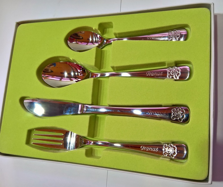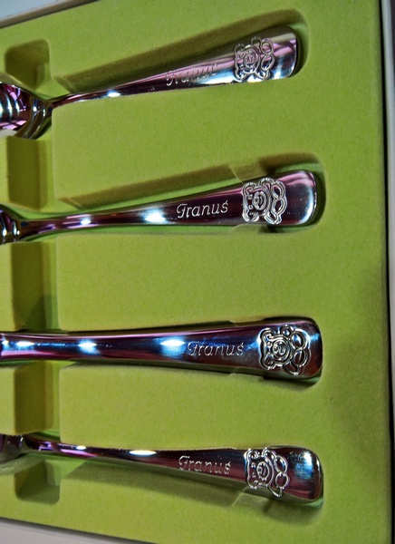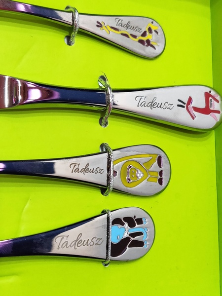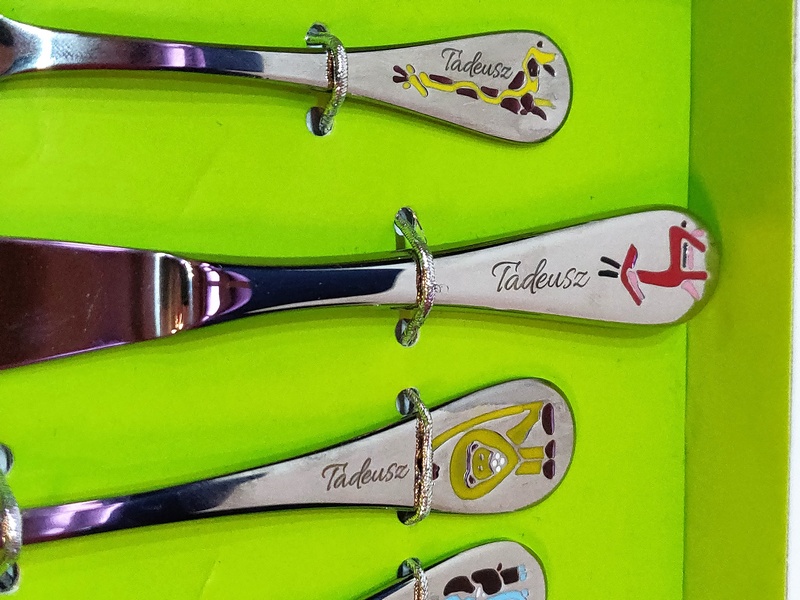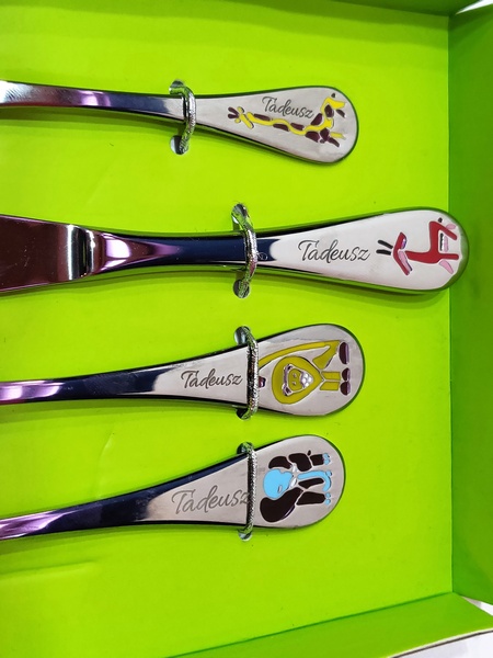 Na każdym ze sztućców wykonany jest grawer imienia.