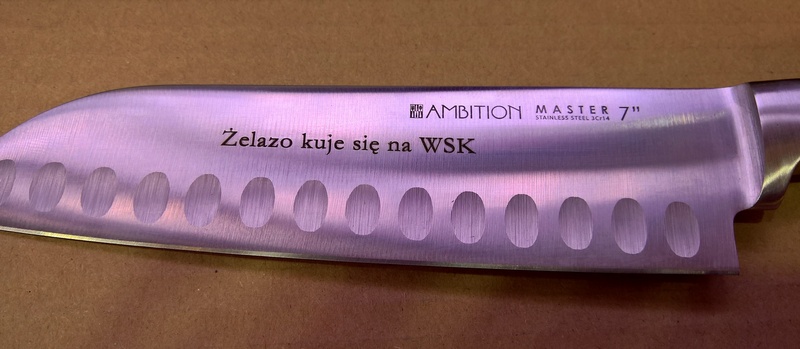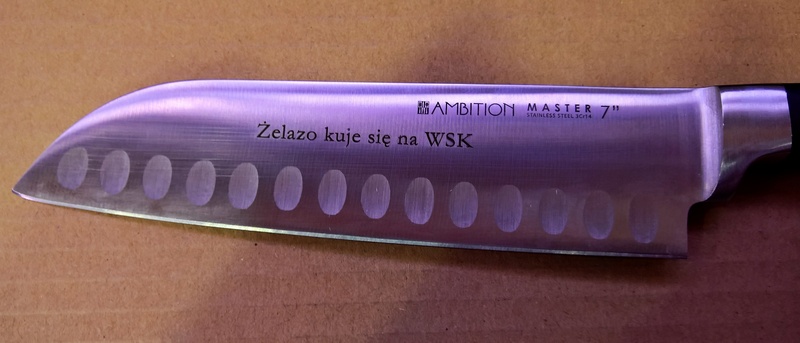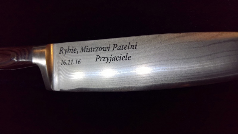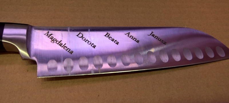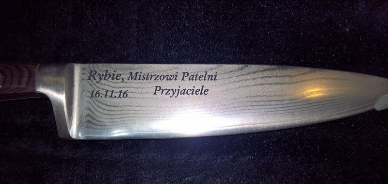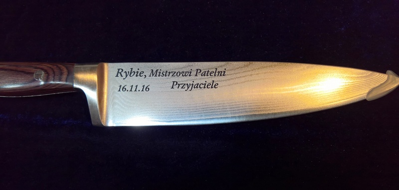 Usługa grawerowania pamiątkowego noża szefa kuchni.