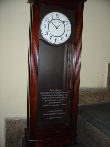 Usługa grawerowania pamiątkowego prezentowego stojącego zegara.