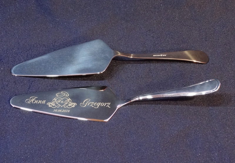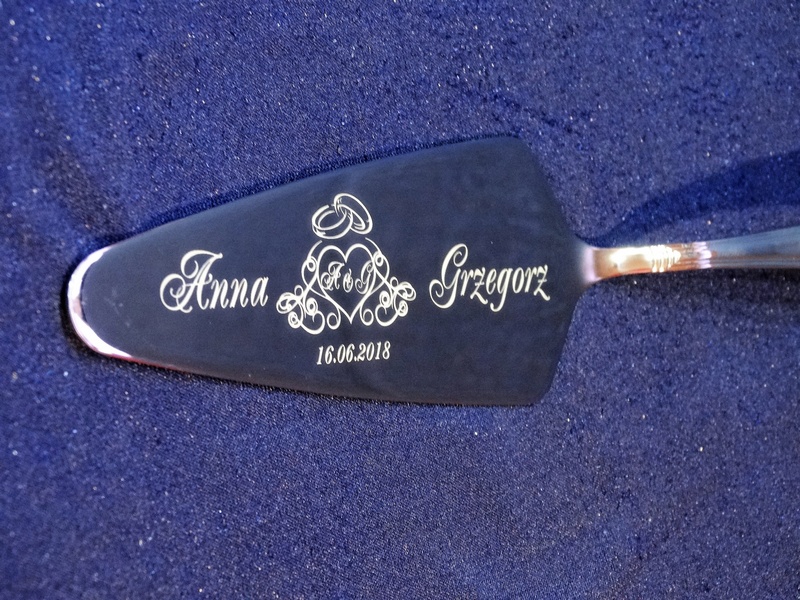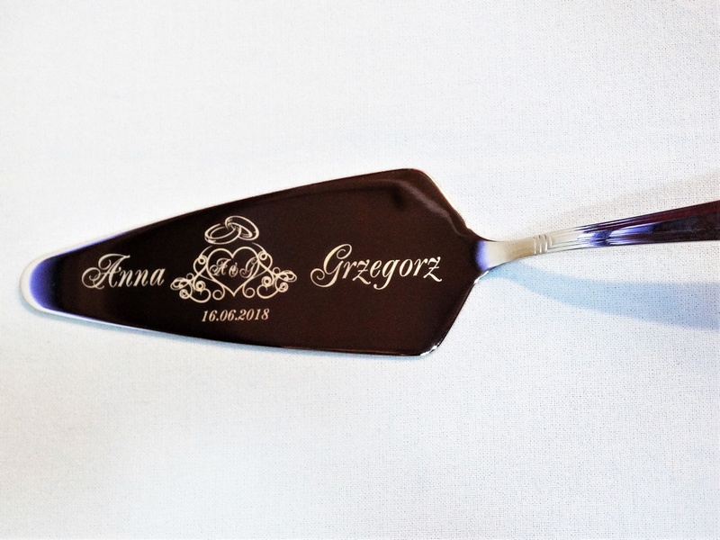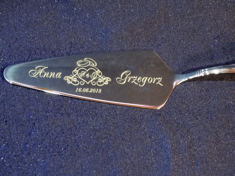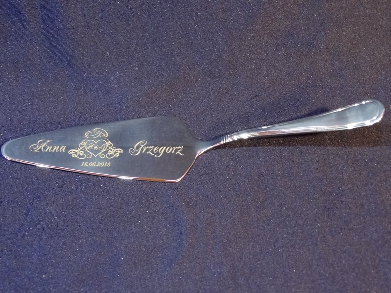Usługa grawerowania pamiątkowej łopatki do ciast.