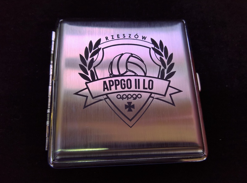 Usługa grawerowania pamiątkowej papierośnicy.