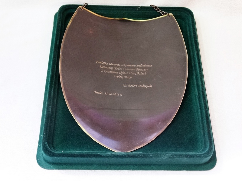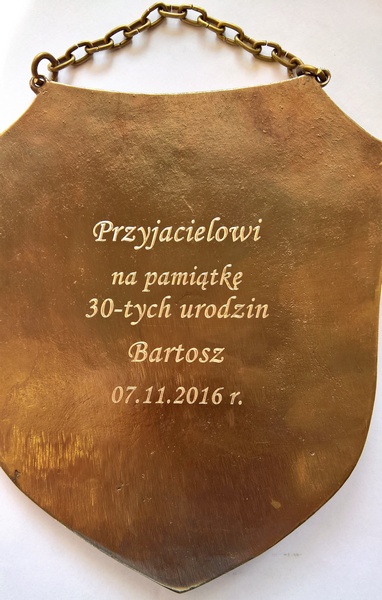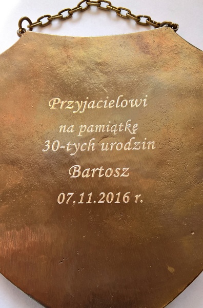 Usługa grawerowania pamiątkowej tarczy - ryngrafu.