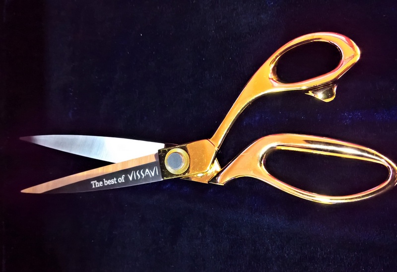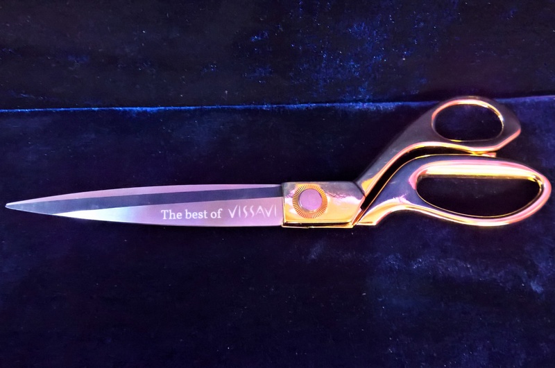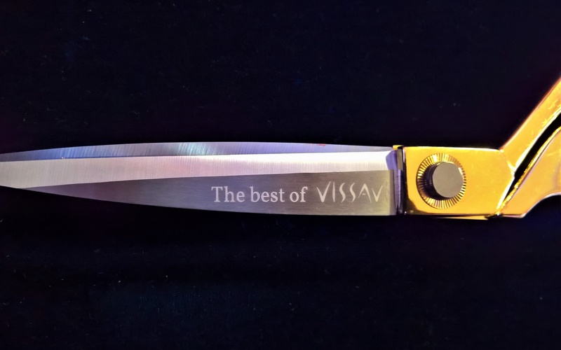 Usługa grawerowania pamiątkowych nożyc krawieckich.