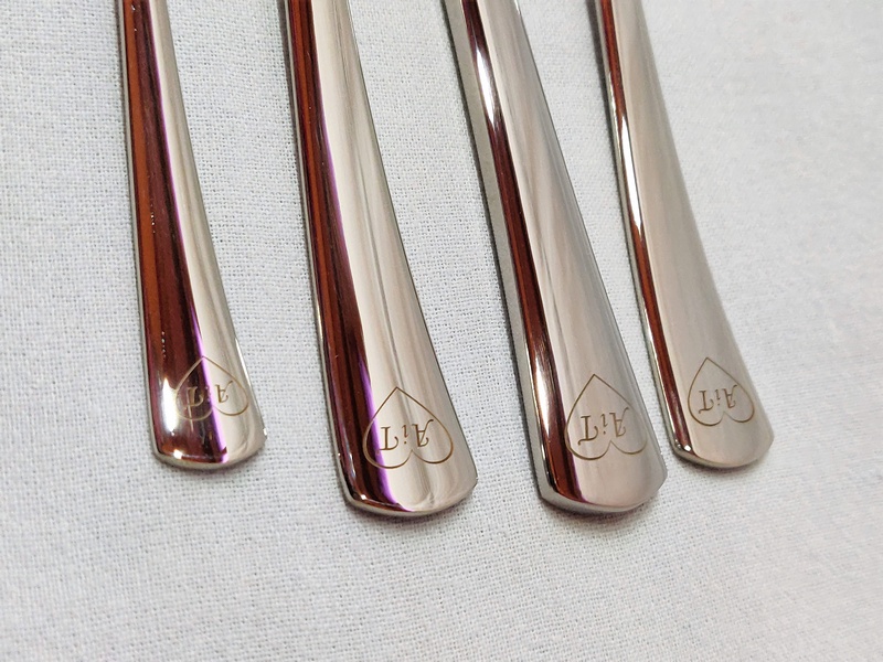 Usługa grawerowania dedykacji lub grafiki sztućcach.
