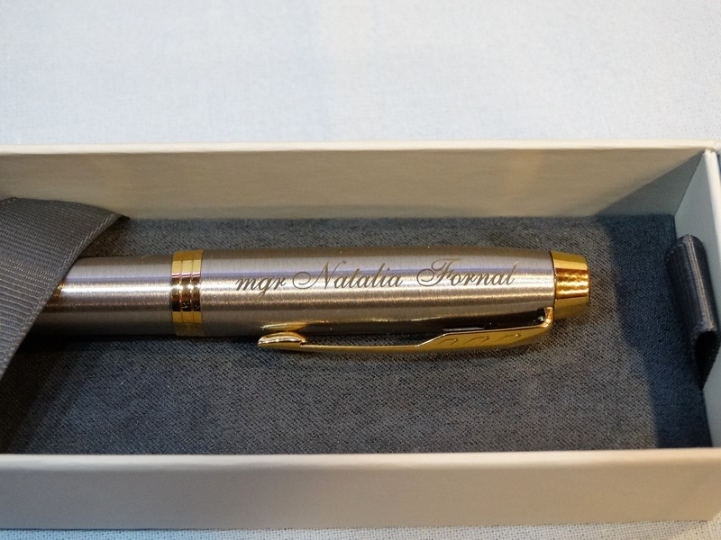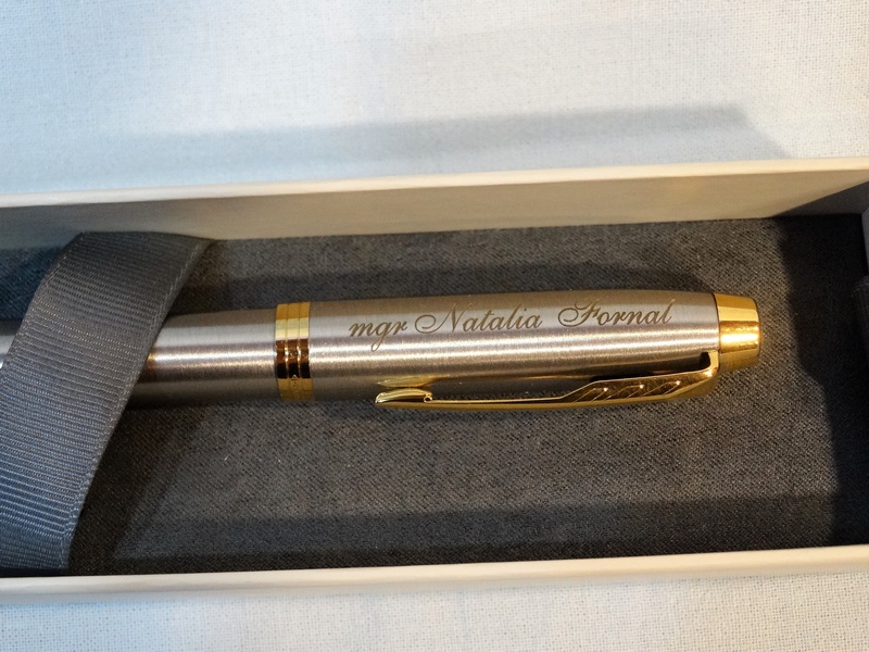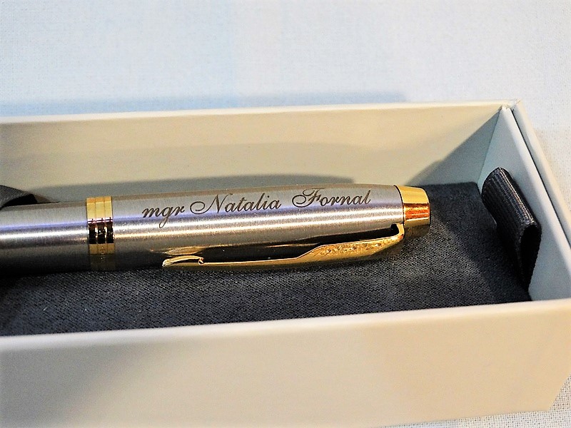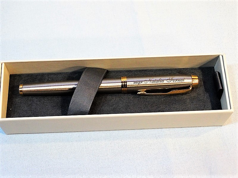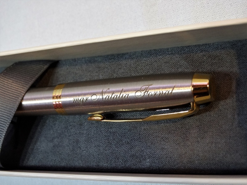 Usługa grawerowania pamiątkowego metalowego stalowego pióra.