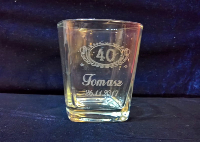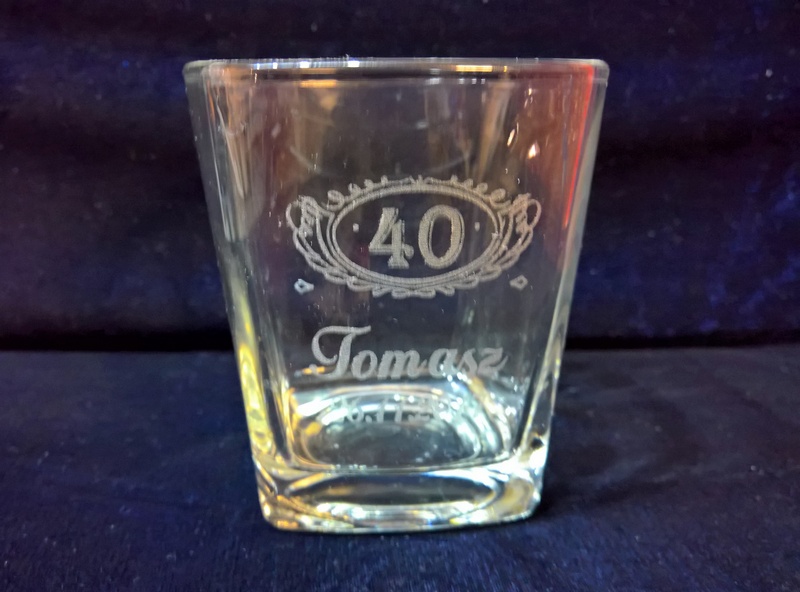 Cena wykonania usługi zawiera w sobie grawer na przedniej ściance szklaneczki.