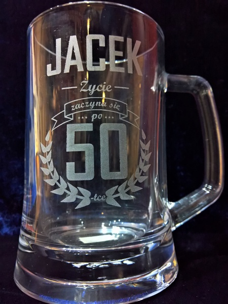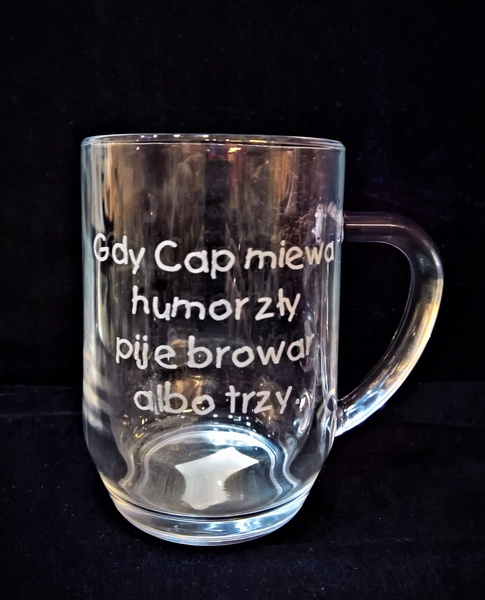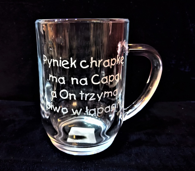 Cena wykonania usługi zawiera w sobie grawer na jednej ściance kufla.