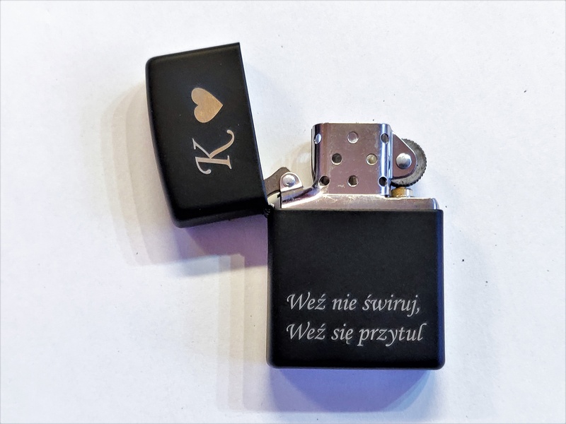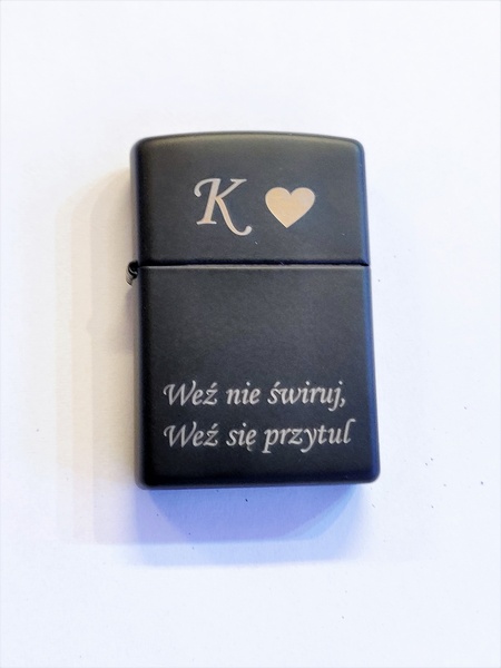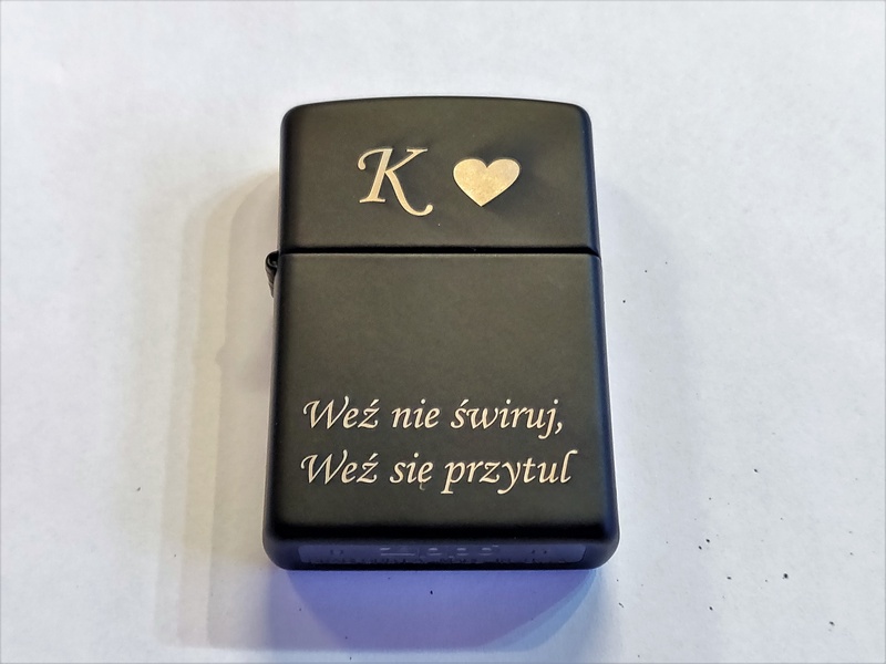 Usługa grawerowania pamiątkowej zapalniczki benzynowej Zippo czarnej matowej.