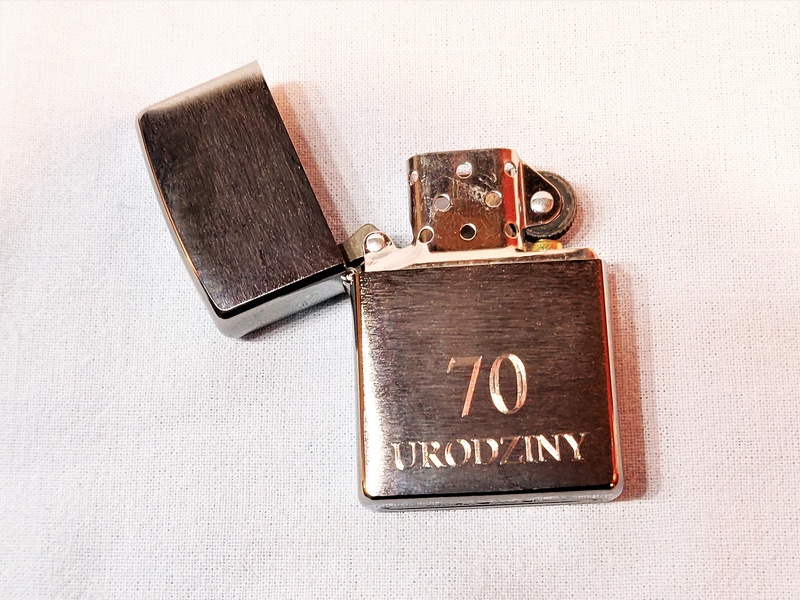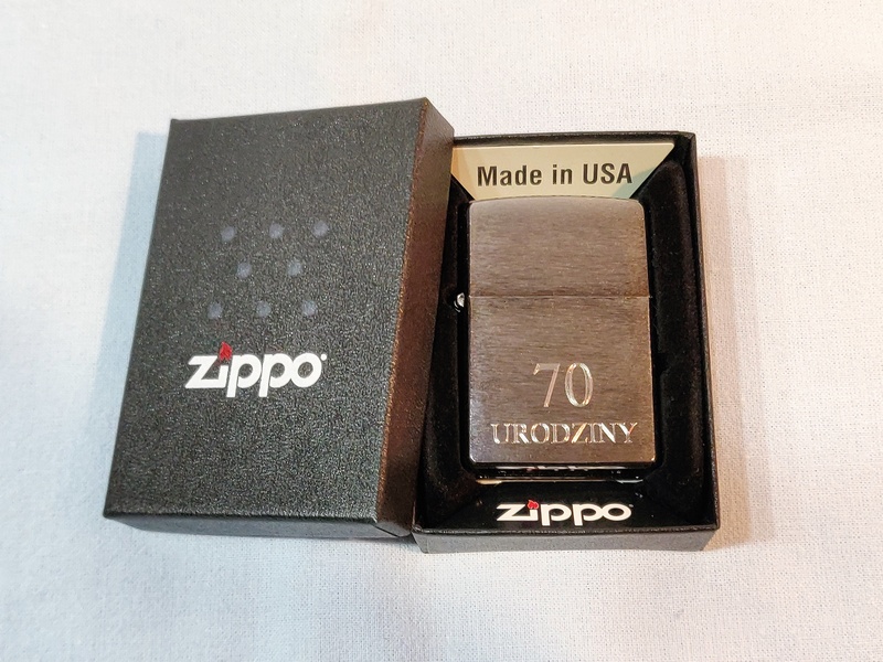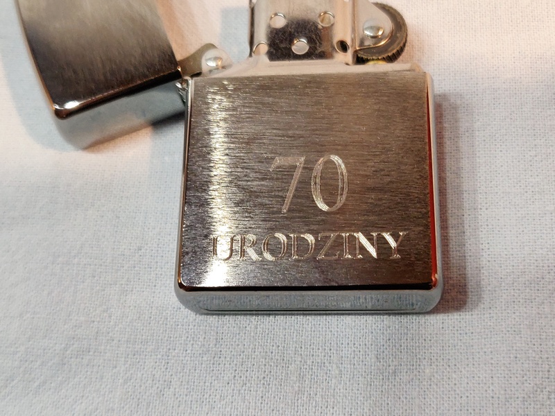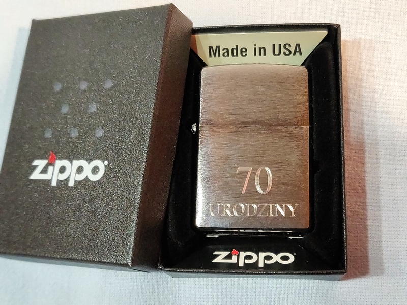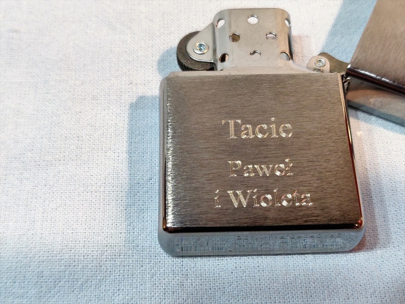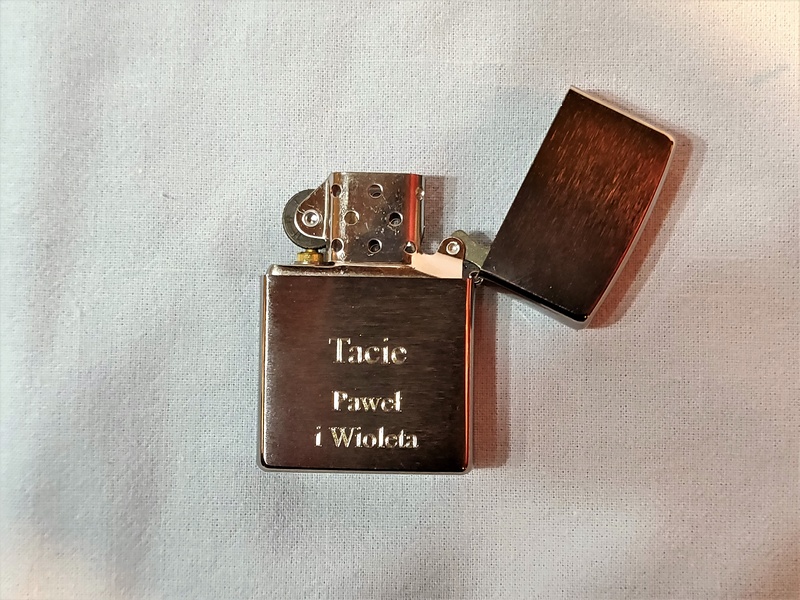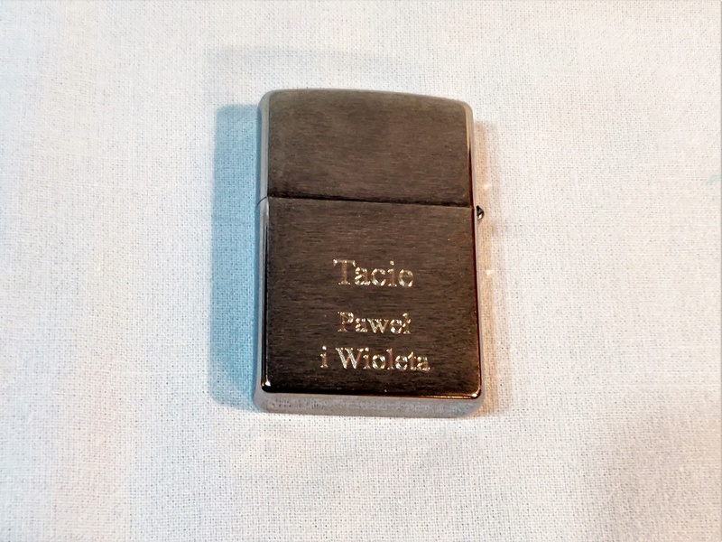 Usługa grawerowania pamiątkowej zapalniczki benzynowej Zippo satynowej.