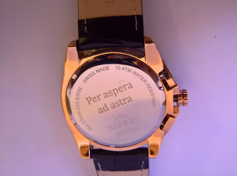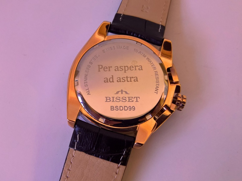 Usługa grawerowania na zegarku Bisset.
