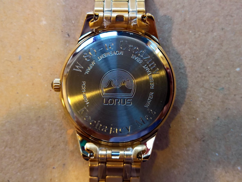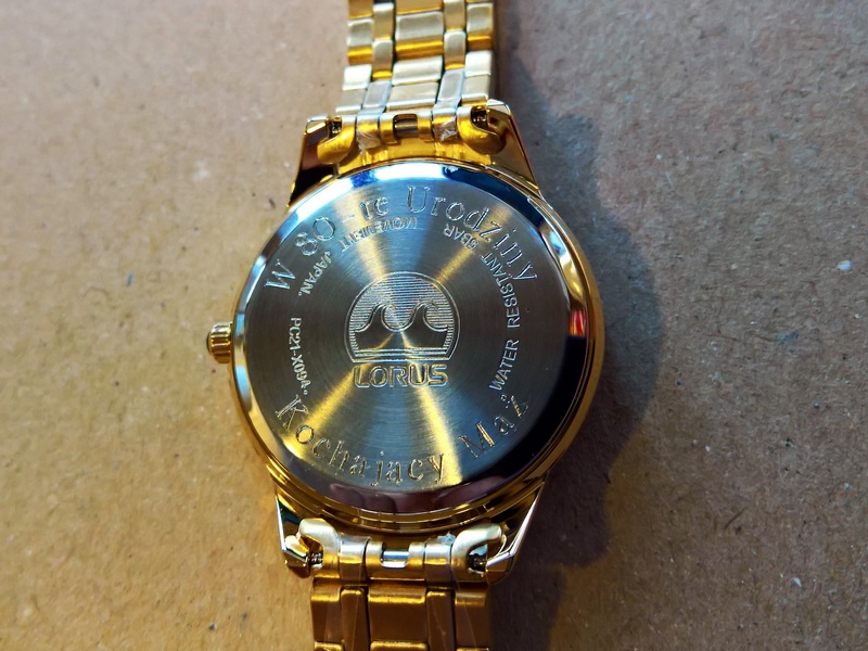 Usługa grawerowania na damskim zegarku Lorus.
