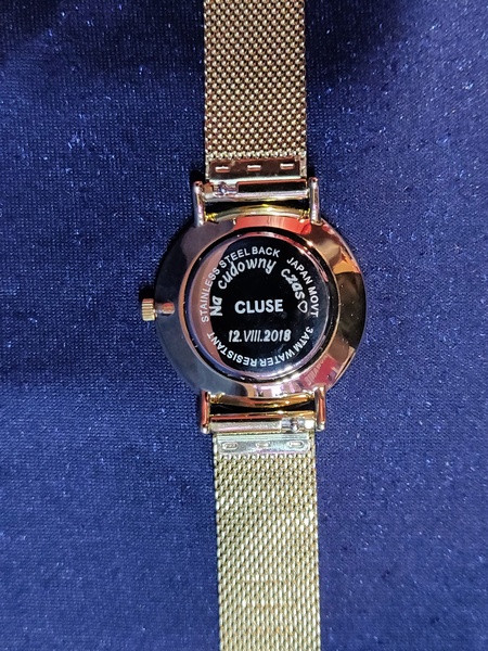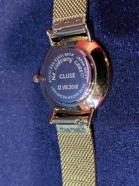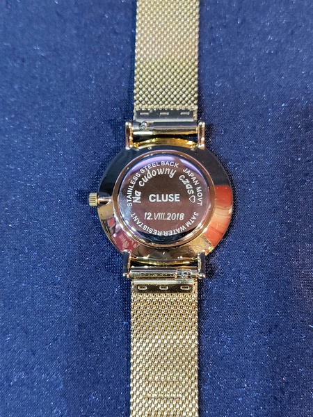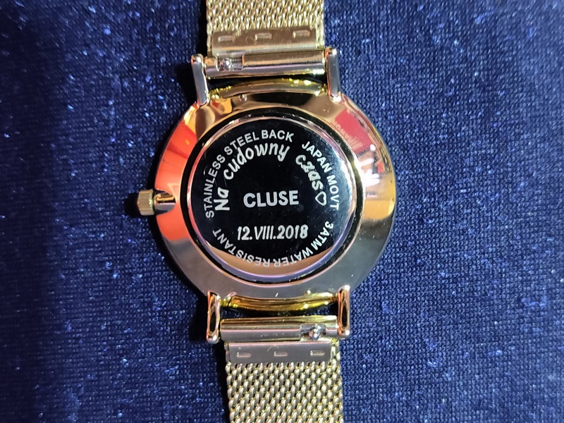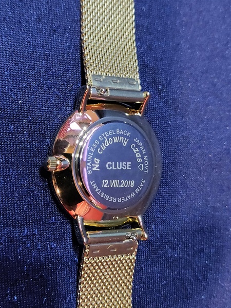 Usługa grawerowania na zegarku damskim Cluse.