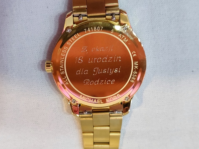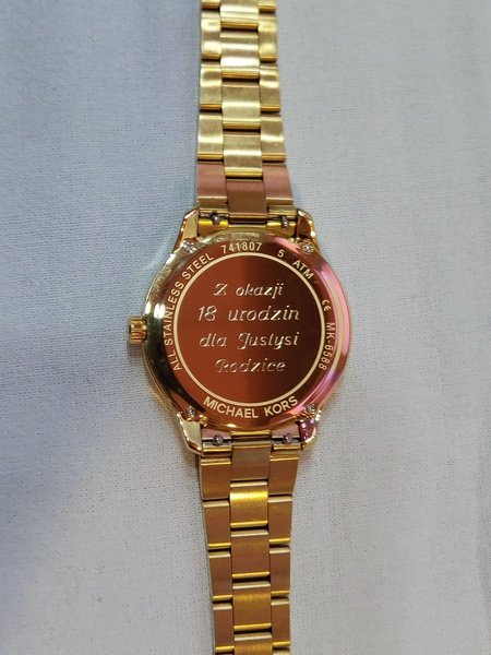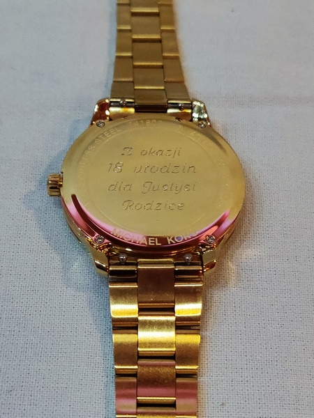 Usługa grawerowania na zegarku damskim Michael Kors.