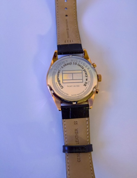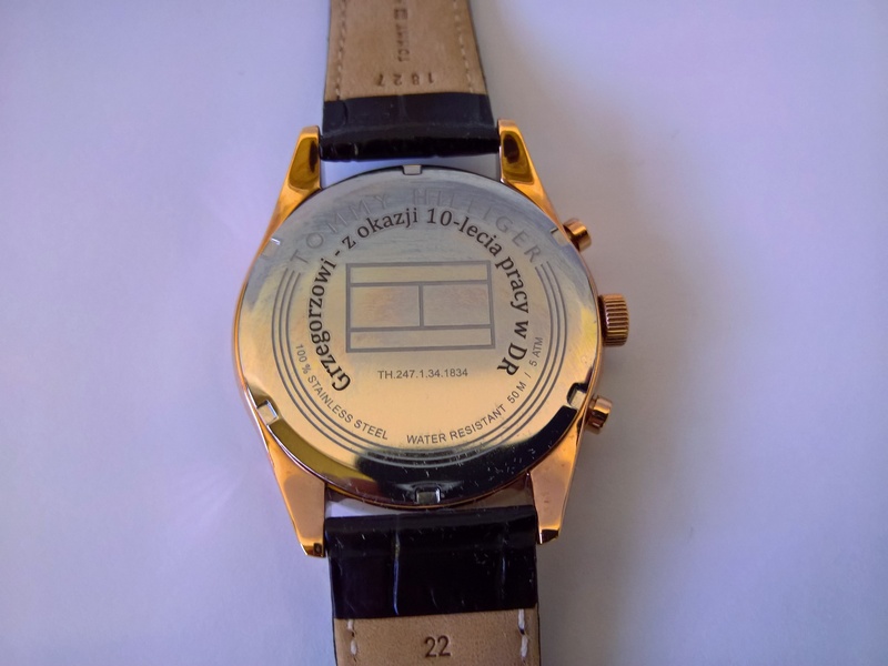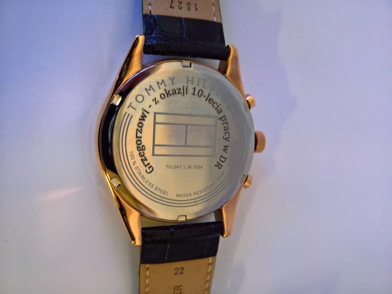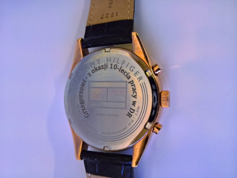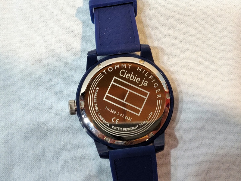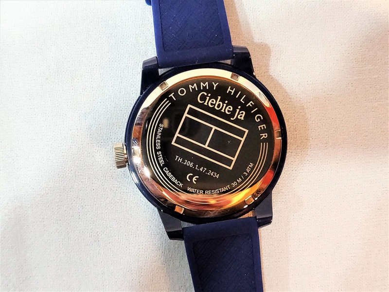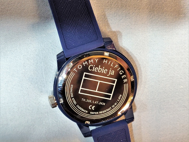 Usługa grawerowania na męskim zegarku Tommy Hilfiger.