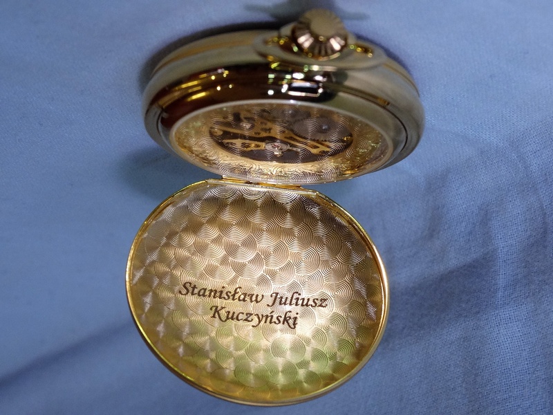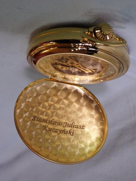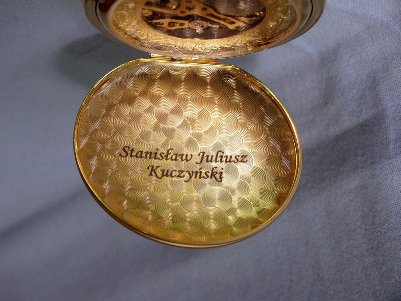 Grawer wykonany jest na wewnętrznej stronie zatrzasku koperty zegarka.