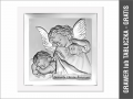 Aniołek z latarenką z podpisem - srebrny obrazek kwadratowy na białym drewnie 6430W