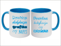 Kubek biały z niebieskim uszkiem i wnętrzem z nadrukiem