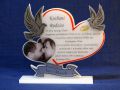 Podziękowanie dla Rodziców - statuetka w kształcie serca z gołąbkami z pleksi i laminatów