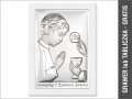Pamiątka I Komunii Św. z chłopczykiem przyjmującym Komunię - srebrny obrazek na białym drewnie 6491W