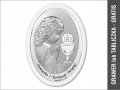 Pamiątka I Komunii Św. dla dziewczynki z podpisem - srebrny owalny obrazek na białym drewnie 6571AW