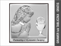 Pamiątka I Komunii Św. dla dziewczynki z podpisem - srebrny obrazek kwadratowy 6568A