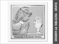 Pamiątka I Komunii Św. dla dziewczynki - srebrny kwadratowy obrazek z podpisem na białym drewnie 6568AW
