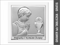 Pamiątka I Komunii Św. dla chłopczyka - srebrny kwadratowy obrazek z podpisem na białym drewnie 6568OW
