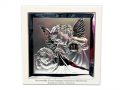 Pamiątka Chrztu Św. - srebrny obrazek Aniołek z latarenką kwadratowy 6387W na białym drewnie