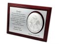 Pamiątka Komunii dla dziewczynki - srebrny obrazek i laminat srebrny na wiśniowym podkładzie