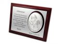 Pamiątka Komunii dla chłopczyka - srebrny obrazek i laminat srebrny na wiśniowym podkładzie