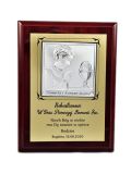 Pamiątka Komunii dla chłopczyka - srebrny obrazek 6568/1XO na złotej tabliczce i wiśniowym podkładzie