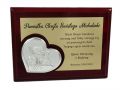 Pamiątka Chrztu Św. - srebrny obrazek z Aniołkiem w sercu na wiśniowym drewnie
