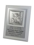 Pamiątka Chrztu Św. - srebrny kwadratowy Aniołek na białym podkładzie