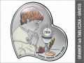 Pamiątka I Komunii z chłopczykiem w sercu - srebrny obrazek kolorowy DS03/C