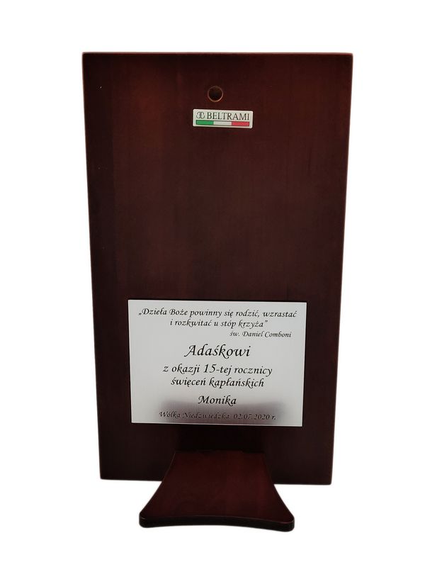 Grawer dedykacji wykonany jest bezpośrednio na drewnie lub też na dołączonej tabliczce.