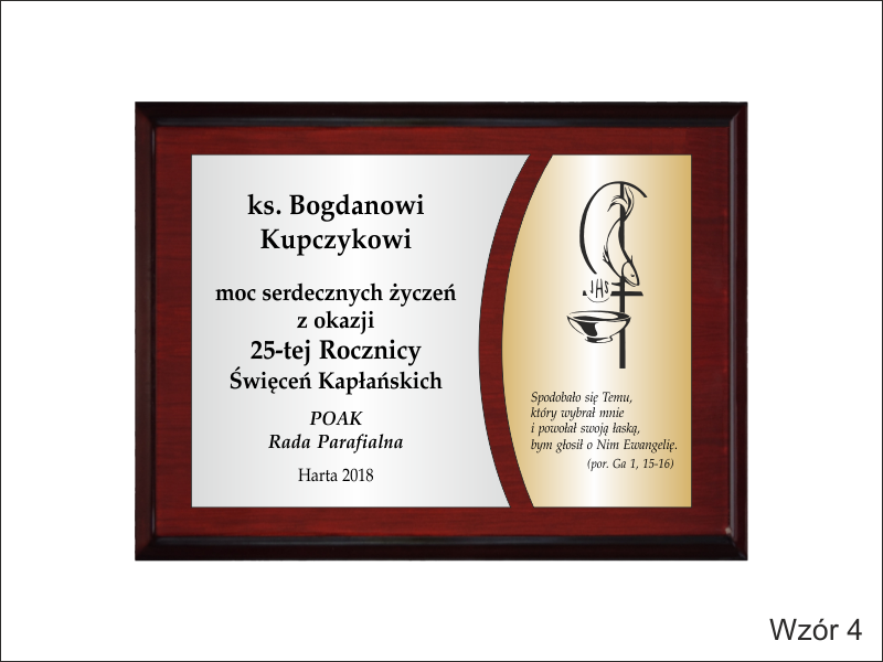 Istnieje możliwość wykonania pamiątki wg indywidualnych ustaleń i projektu lub wg jednego z wzorów.