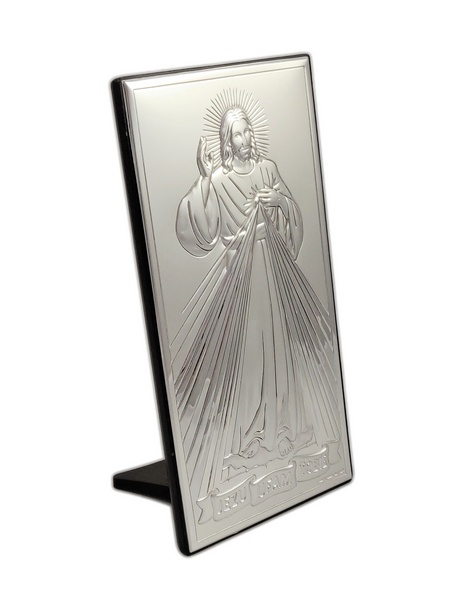 - obrazek srebrny w prostokątnym kształcie przedstawiający wizerunek Jezusa miłosiernego