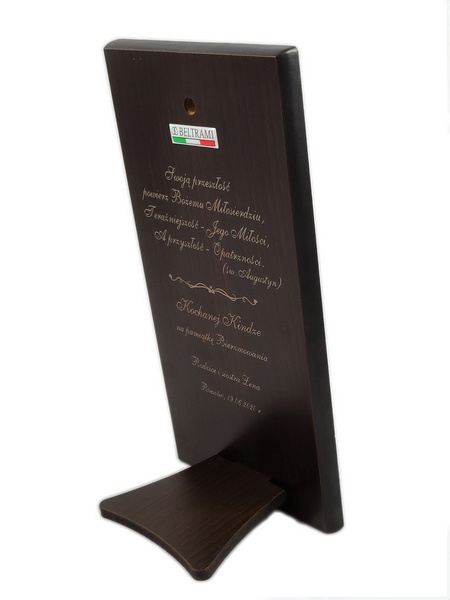 Grawer dedykacji wykonany jest bezpośrednio na drewnie lub na dołączonej tabliczce.