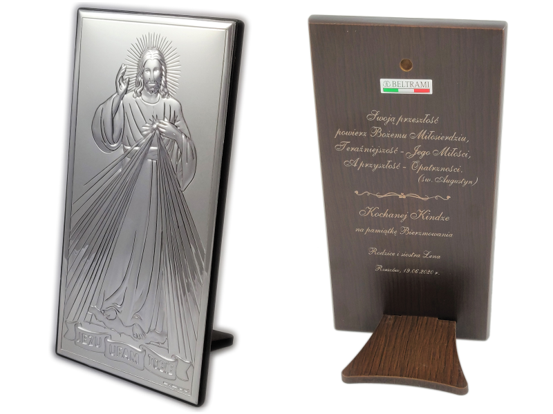 Na srebrnym obrazku możemy wykonać indywidualny grawer dedykacji.