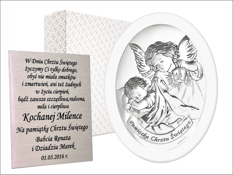 Na srebrnym obrazku możemy wykonać indywidualny grawer dedykacji.