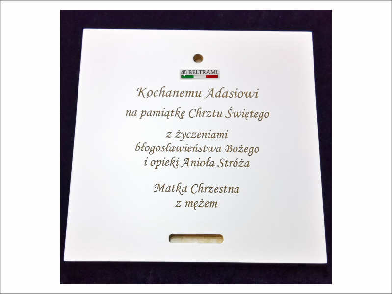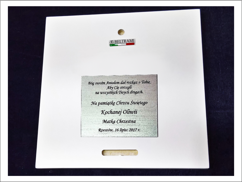 Na srebrnym obrazku możemy wykonać indywidualny grawer dedykacji.
